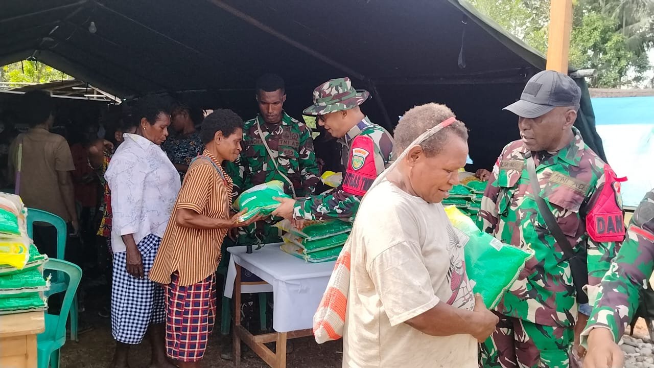 TMMD ke-126 Kodim 1711/BVD Wujudkan Kepedulian Sosial, TNI dan Persit Bagikan Sembako di Waropko