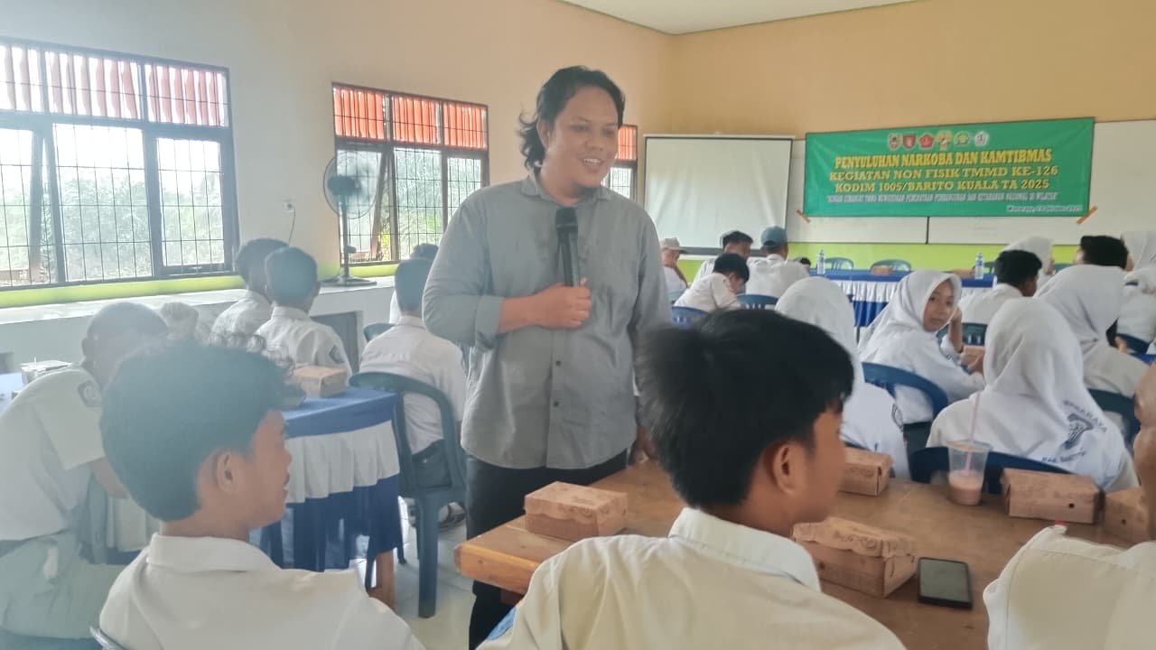 BARITO KUALA – Upaya membangun kesadaran generasi muda terhadap bahaya narkoba dan pentingnya keamanan ketertiban masyarakat (Kamtibmas) dilakukan melalui sasaran non-fisik TMMD Ke-126 Kodim 1005/Barito Kuala. Kegiatan ini digelar di SMA 1 Negeri Wanaraya, yang melibatkan siswa, siswi, serta jajaran guru.