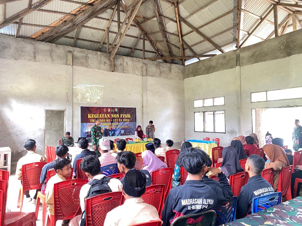 Tolitoli – Dalam rangka mendukung program nonfisik TNI Manunggal Membangun Desa (TMMD) Ke-127, Satgas TMMD Kodim 1305/Buol Tolitoli mengadakan penyuluhan mengenai bahaya penyalahgunaan narkoba di Desa Oyom, Kecamatan Lampasio, Kabupaten Tolitoli, pada Kamis (12/01/2026). Kegiatan ini dilaksanakan untuk menunjukkan kepedulian TNI terhadap generasi muda dan masyarakat agar terhindar dari dampak negatif penyalahgunaan narkoba yang dapat merusak masa depan serta mengancam stabilitas sosial di lingkungan masyarakat.