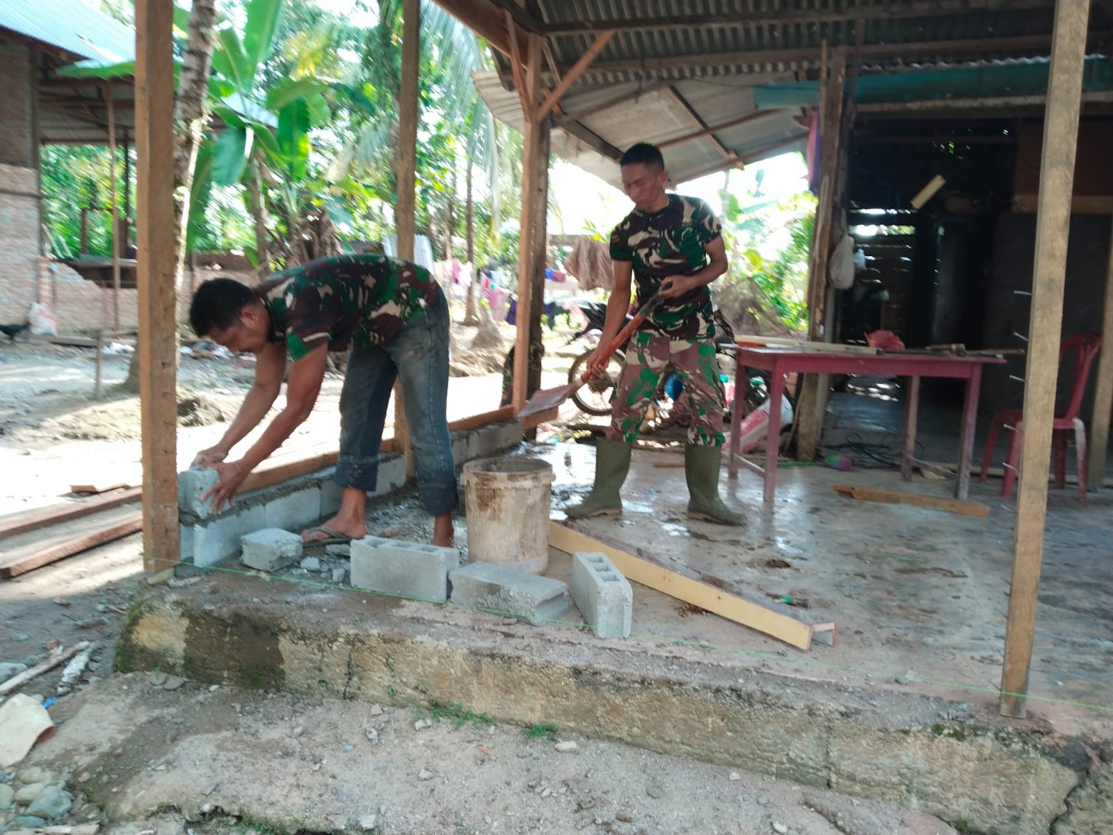 Di lokasi, gotong royong menjadi tenaga utama. Prajurit dan warga bekerja seirama, seolah satu keluarga besar yang sedang mendirikan harapan bersama.