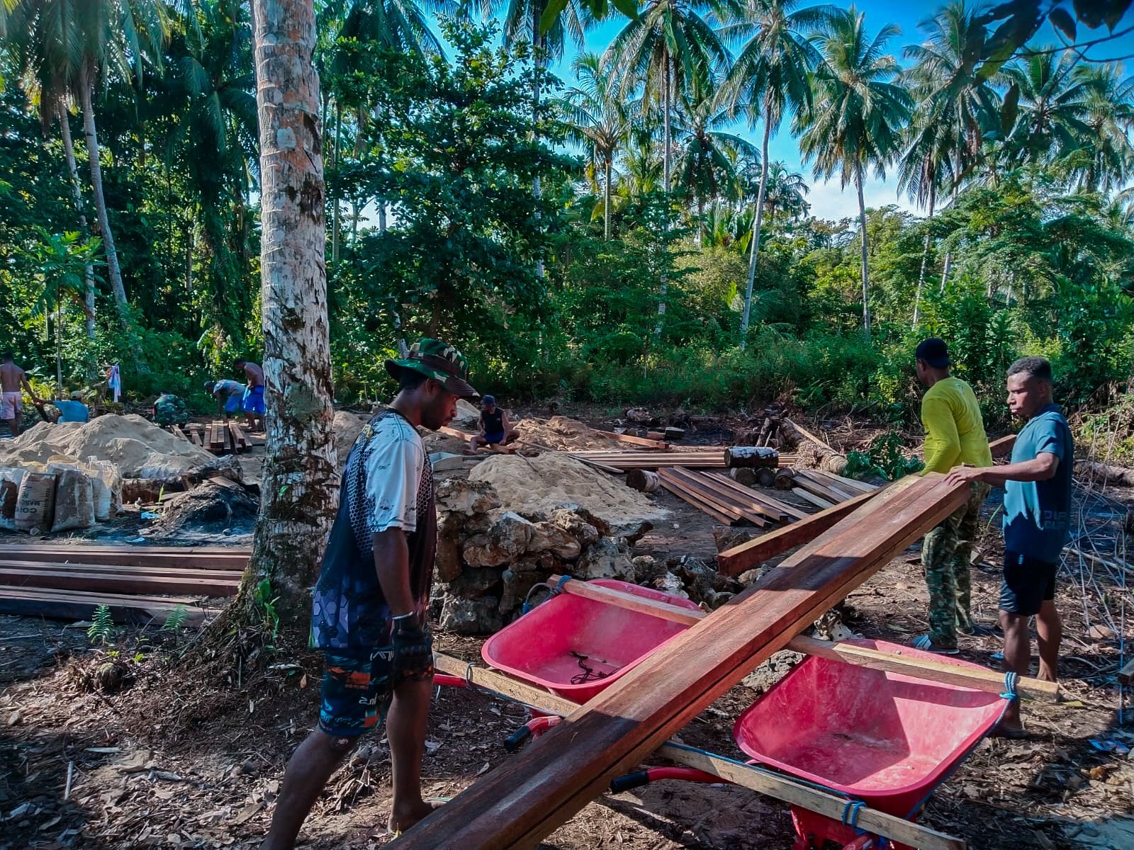 Dalam pelaksanaannya, pembangunan rumah ini memanfaatkan sumber daya lokal yang tersedia. Anggota Satgas TMMD terlibat aktif dalam setiap tahapan, mulai dari persiapan hingga pembangunan struktur dasar rumah.