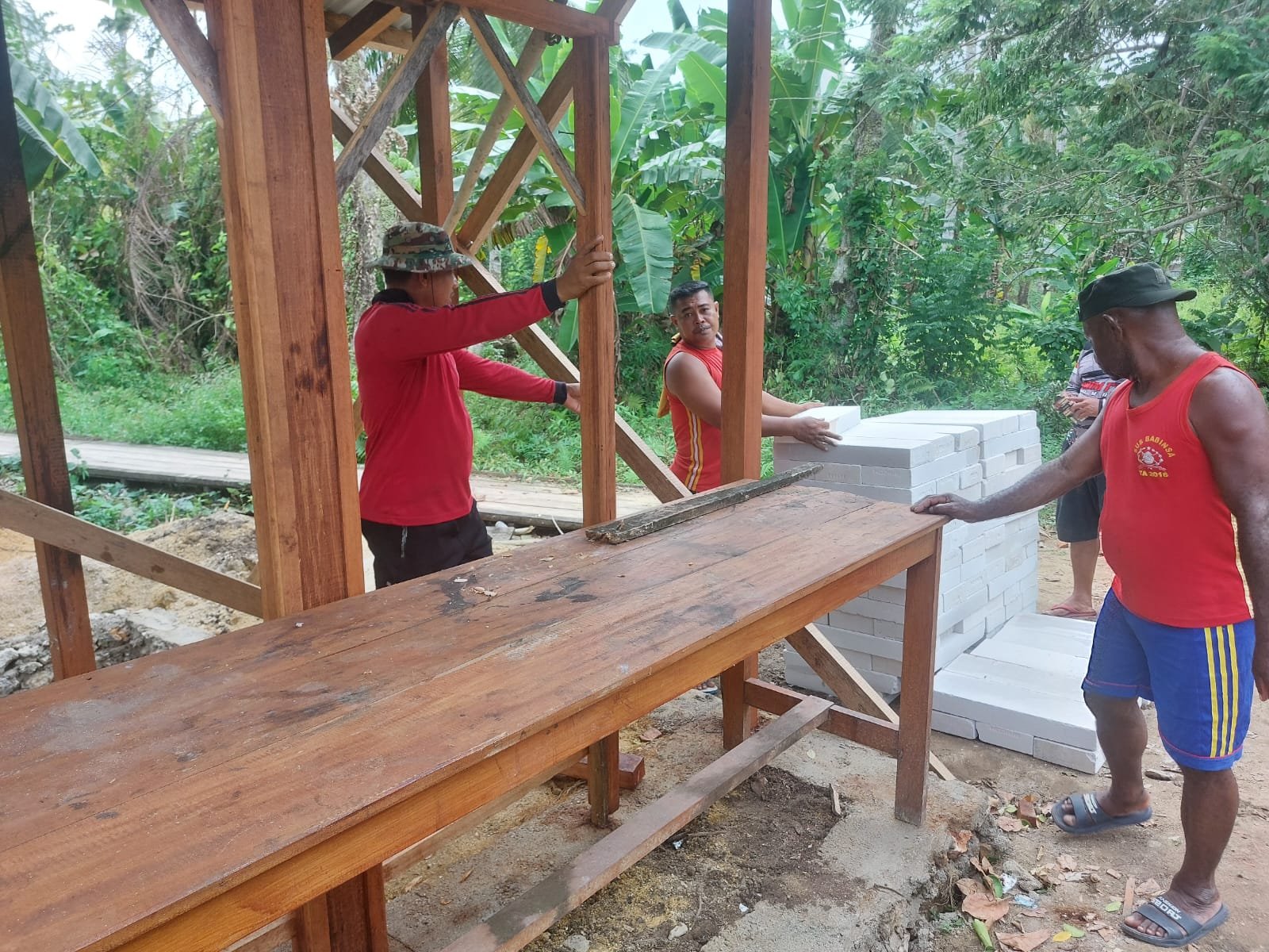 Saat ini, tahap pengerjaan masih dalam proses awal, yang mencakup persiapan lahan dan pembangunan pondasi. Personel Satgas TMMD bersama warga setempat bekerja secara gotong royong untuk menyelesaikan proyek ini.
