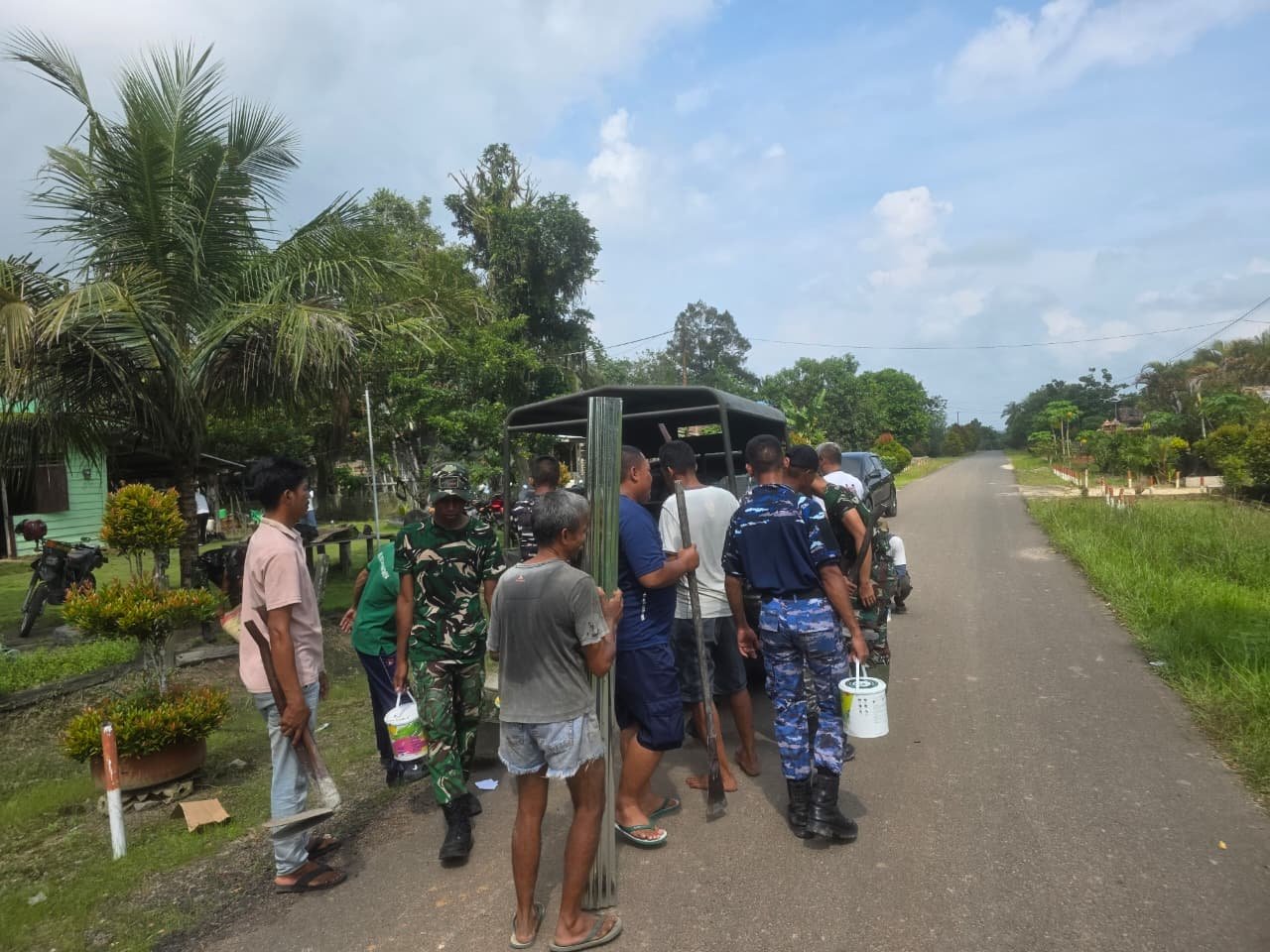 Pangkalan Banteng – Program TNI Manunggal Membangun Desa (TMMD) Ke-128 yang dilaksanakan oleh Kodim 1014/Pbn menunjukkan perkembangan yang menggembirakan. Saat ini, kegiatan yang dilaksanakan meliputi penyediaan bahan bangunan untuk Rumah Tidak Layak Huni (RTLH) yang berlokasi di Desa Sungai Hijau, Kecamatan Pangkalan Banteng, pada Senin (27/04/2026).