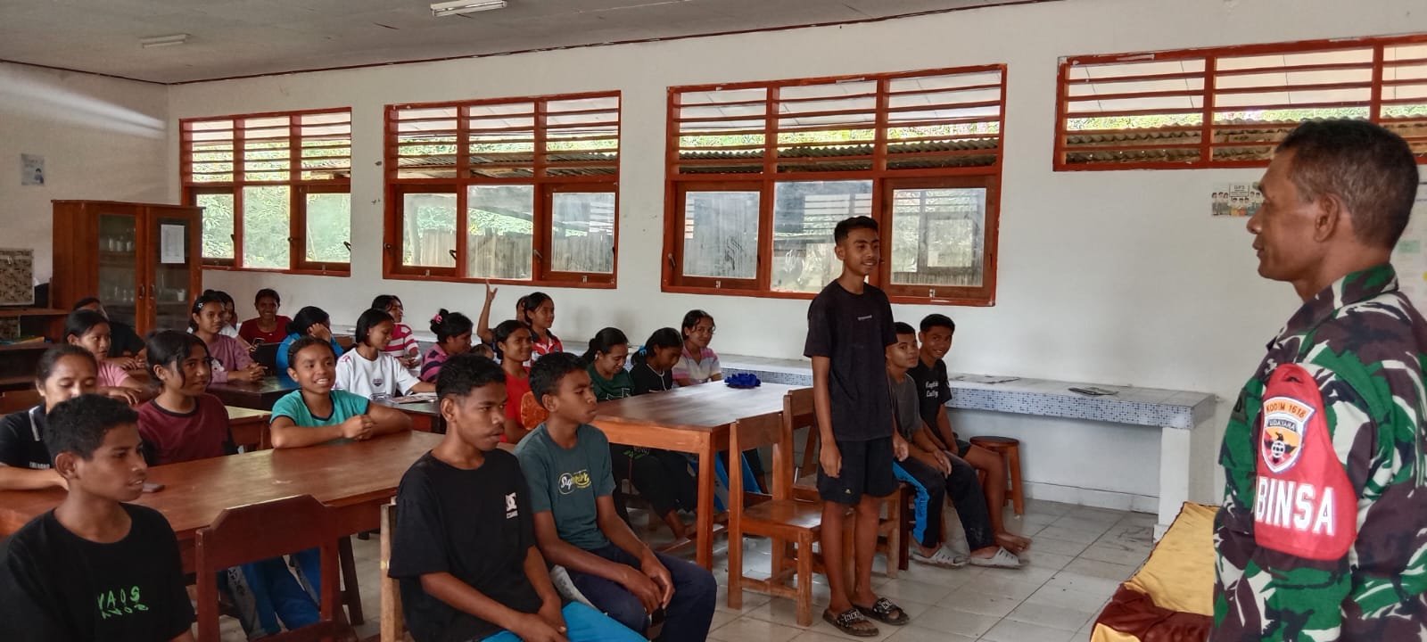 Tampak peserta aktif berinteraksi dengan narasumber, menunjukkan antusiasme yang tinggi untuk mengabdi kepada bangsa dan negara. Melalui kegiatan ini, TNI kembali menegaskan dedikasinya dalam membangun sumber daya manusia yang berkualitas dan berkarakter di wilayah-wilayah perbatasan.