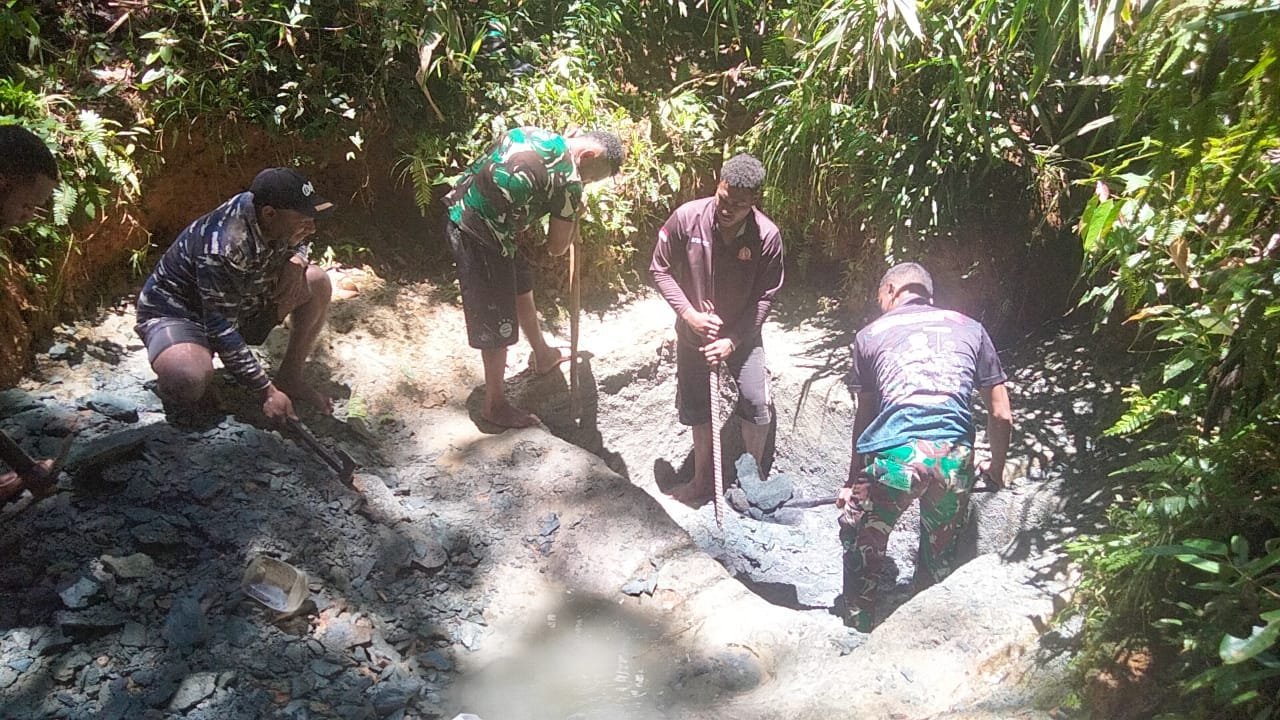 Terdapat lima titik sumber air bersih yang tengah digali secara manual oleh personel Satgas bersama masyarakat setempat. Program ini bertujuan memenuhi kebutuhan dasar warga, terutama dalam penyediaan air bersih untuk konsumsi dan kebutuhan rumah tangga.