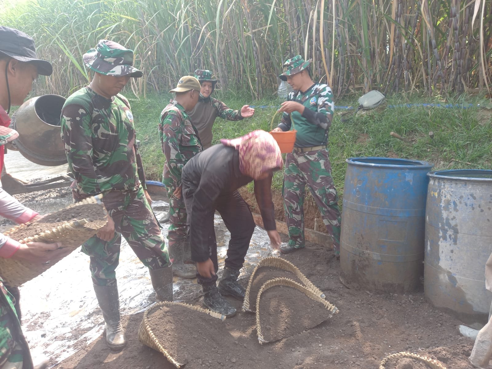 KUDUS – Di tengah kebun tebu yang membentang di Desa Kandangmas, Kecamatan Dawe, semangat gotong royong antara TNI dan warga desa tampak menyatu. Anggota Satgas TNI Manunggal Membangun Desa (TMMD) Ke-125 Kodim 0722/Kudus bahu-membahu melaksanakan pengerjaan betonisasi jalan sepanjang 1.250 meter dengan lebar 3 meter dan ketebalan 15 sentimeter, Senin (28/07).