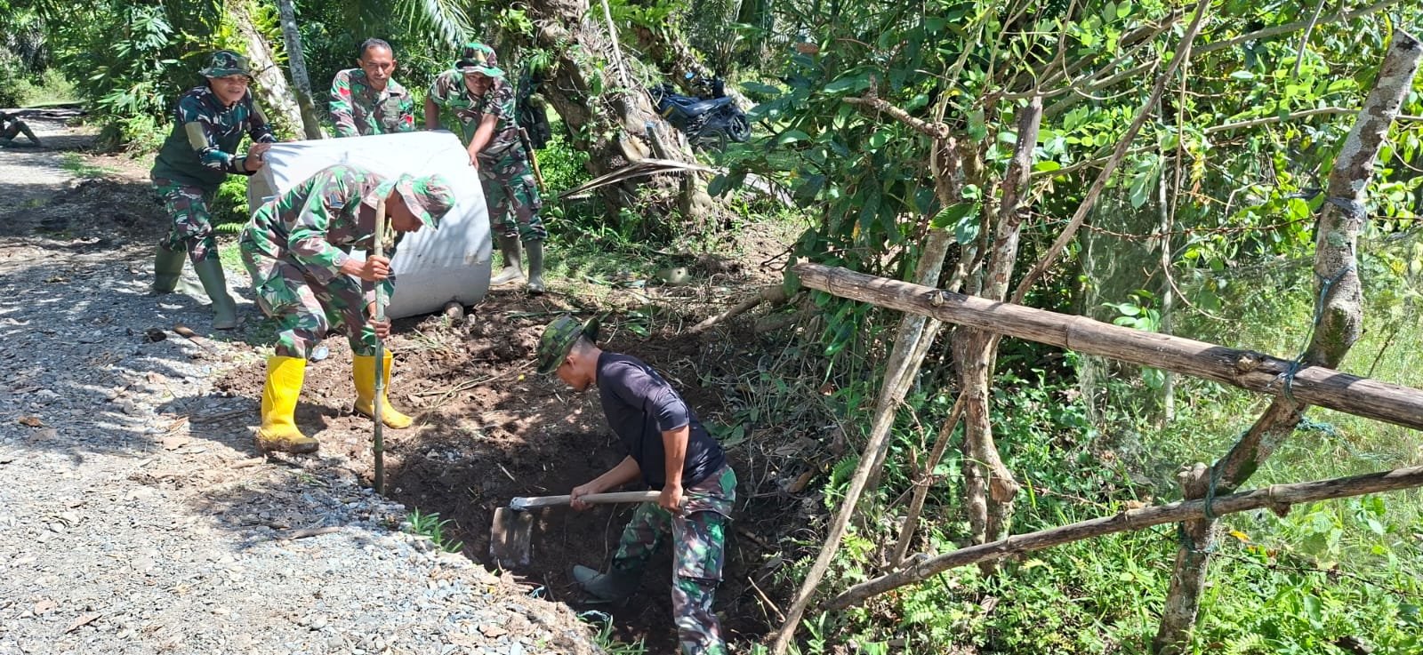 Di Desa Pasi Aceh, Kecamatan Woyla, Satgas TMMD bersama warga melaksanakan pemasangan gorong-gorong sebagai bagian dari pembangunan infrastruktur jalan. Keberadaan gorong-gorong ini sangat vital untuk menjaga stabilitas badan jalan sekaligus memastikan suplai air menuju area persawahan dan kebun tetap terjaga.