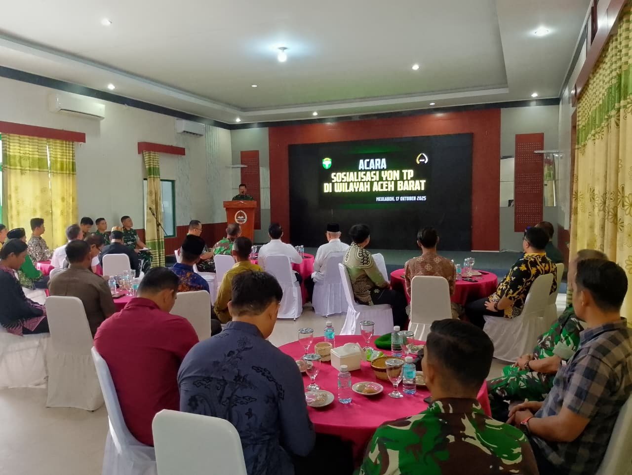 ACEH BARAT – Kapok Sahli Pangdam Iskandar Muda (IM) Brigjen TNI Dr. Bambang Sulistyo Hery, S.Sos., M.Han., memberikan sosialisasi terkait pembentukan Satuan baru Batalion Teritorial Pembangunan (Yon TP) di Makodim 0105/Aceh Barat, Jalan Imam Bonjol, Desa Drien Rampak, Kecamatan Johan Pahlawan, Jumat (17/10/2025).