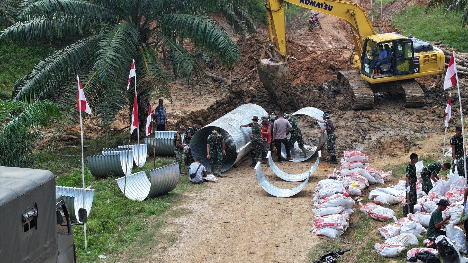 Aceh Timur – Komitmen TNI Angkatan Darat dalam mendukung pemulihan infrastruktur pascabencana banjir semakin terlihat dengan selesainya pembangunan empat unit Jembatan Armco. Pembangunan ini dilakukan oleh personel Kodim 0104/Aceh Timur dan Yonif TP 853/Bawar Reje Bur di Dusun Leupon, Gampong Bukit Kuta, Kecamatan Peudawa, Kabupaten Aceh Timur.
