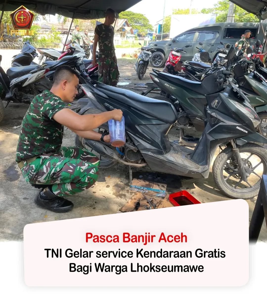 Setelah terjadinya bencana banjir yang melanda wilayah Lhokseumawe, Aceh, pada Sabtu, 6 Desember 2025, Satuan Peralatan Kodam Iskandar Muda (Paldam IM) berinisiatif untuk menggelar program layanan servis kendaraan gratis bagi masyarakat terdampak. Inisiatif ini diambil oleh Detasemen Peralatan (Denpal) IM/1 Lhokseumawe sebagai bentuk kepedulian dan komitmen dalam mendukung pemulihan pasca bencana.