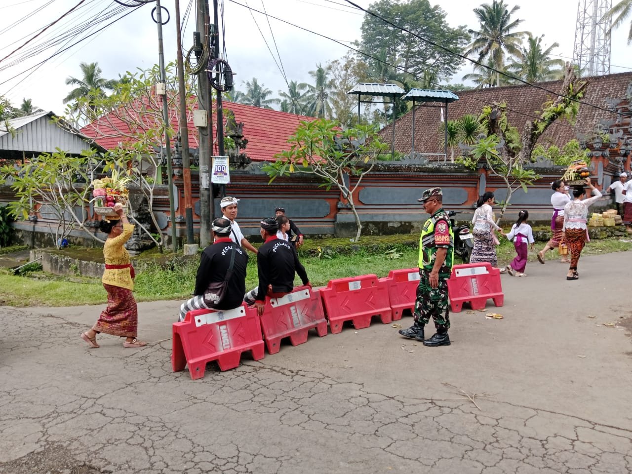 Kegiatan ini dilakukan untuk mencegah potensi gangguan dan memastikan bahwa upacara dapat berlangsung dengan tertib dan aman. Dalam hal ini, Babinsa berkolaborasi dengan Bendesa Adat, Pecalang, dan elemen keamanan lain, serta masyarakat setempat, untuk menciptakan suasana yang kondusif bagi umat Hindu dalam menjalankan persembahyangan mereka.