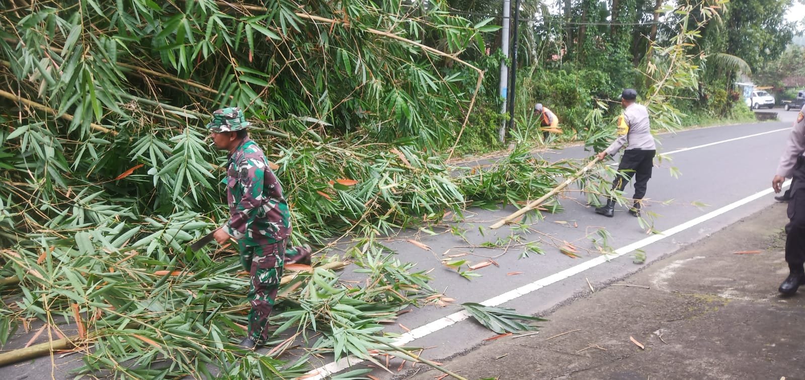 Aksi pembersihan dilakukan dengan menggunakan alat seadanya dan memprioritaskan aspek keselamatan. Berkat kerjasama yang solid, semua bambu yang menutupi jalan berhasil diangkut, sehingga arus lalu lintas kembali normal.