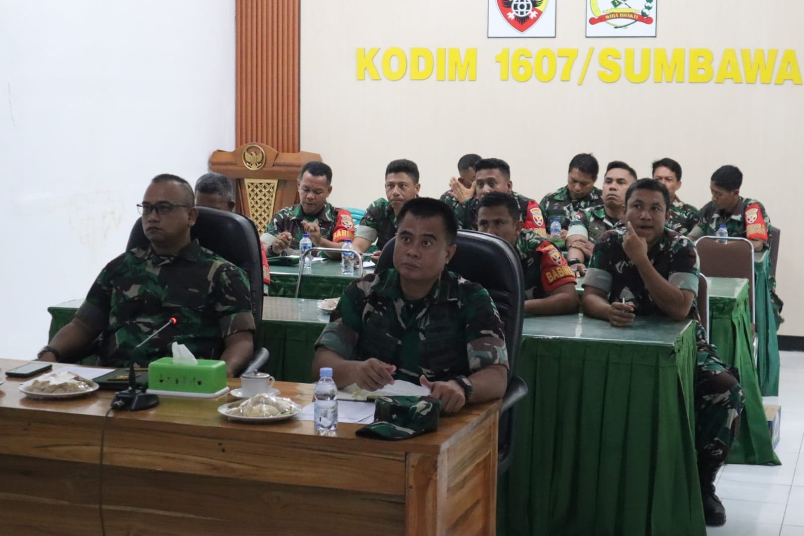 NTB – Sumbawa Besar, Komandan Kodim 1607/Sumbawa bersama para Babinsa perwakilan dari tiap Koramil jajaran Kodim 1607/Sumbawa mengikuti rapat secara Hybrid yang membahas tindak lanjut Perjanjian Kerjasama (PKS) antara PT. Agrinas Pangan Nusantara (Persero) dengan TNI tentang Pembangunan Koperasi Desa/Kelurahan Merah Putih (KDKMP). Kegiatan ini berlangsung di Makodim 1607/Sumbawa pada Senin (13/10/2025).
