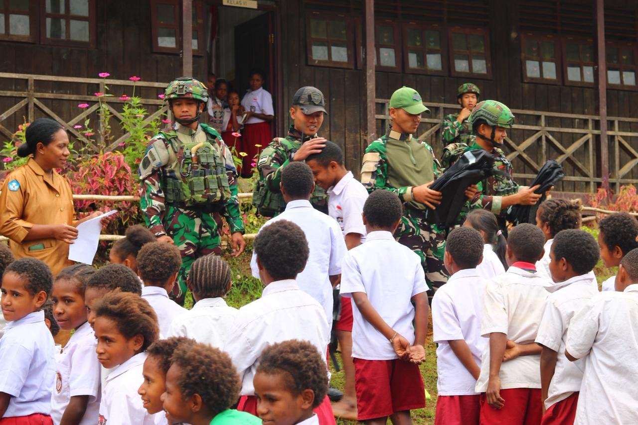 Okpol, Pegunungan Bintang — Pos Okpol Satgas Swasembada Yonif 751/Vira Jaya Sakti (VJS) melaksanakan kegiatan pembinaan teritorial dengan memberikan seragam dan perlengkapan sekolah kepada siswa-siswi SD Okpol. Kegiatan ini dipimpin oleh Danpos Okpol, Letda Inf Lupi Kuncoro, sebagai bentuk komitmen TNI untuk mendukung pendidikan dan mendorong semangat belajar anak-anak di daerah perbatasan, yang berlangsung pada Kamis, 26 Februari 2026.