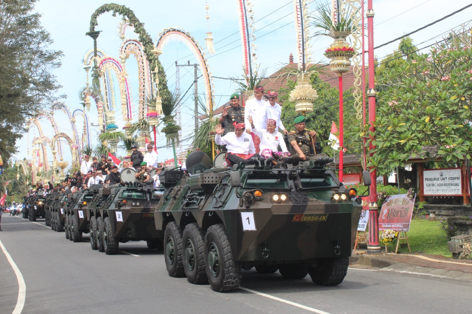 Yang istimewa, Gubernur Bali (Dr. Ir. Wayan Koster, M.M.), Danrem 163/Wira Satya (Brigjen TNI Ida I Dewa Agung Hadisaputra, S.H., Bupati Bangli (Sang Nyoman Sedana Arta, S.E., M.I.Kom), Dandim 1611/Badung (Kolonel Inf I Putu Tangkas W), Dandim 1626/Bangli (Letkol Kav I Ketut Artha Negara, S.H., M.I.P.) dan Forkopimda Bangli juga turut naik Panser Anoa bersama masyarakat, dalam iring-iringan keliling kota Bangli sebagai simbol kebersamaan TNI, pemerintah, dan rakyat.