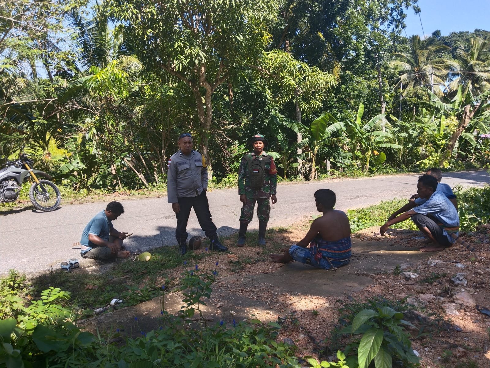 SUMBA BARAT – Dalam upaya menjaga keamanan dan ketertiban masyarakat (kamtibmas) yang kondusif di desa binaan, Babinsa Koramil 02/Walakaka, Sertu Alifin, bersama Bhabinkamtibmas Polsek Lamboya melakukan komunikasi sosial (komsos) dengan warga di Desa Kabukarudi, Kecamatan Lamboya, Kabupaten Sumba Barat pada Minggu (08/02/2026).