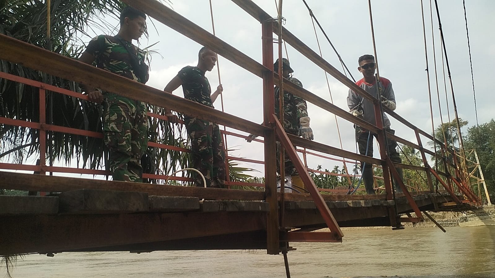 Sinergi antara berbagai satuan ini memastikan bahwa setiap tahapan konstruksi dilaksanakan sesuai dengan spesifikasi teknis demi menjamin keselamatan pengguna jembatan di masa mendatang. Progres pembangunan jembatan gantung ini telah mencapai 85%. Selain pengelasan, para personel juga aktif mengisi bronjong sebagai pelindung pondasi jembatan dari erosi air sungai. Kecepatan dalam penyelesaian proyek ini merupakan hasil dari dedikasi tinggi para prajurit yang bekerja keras di lapangan.