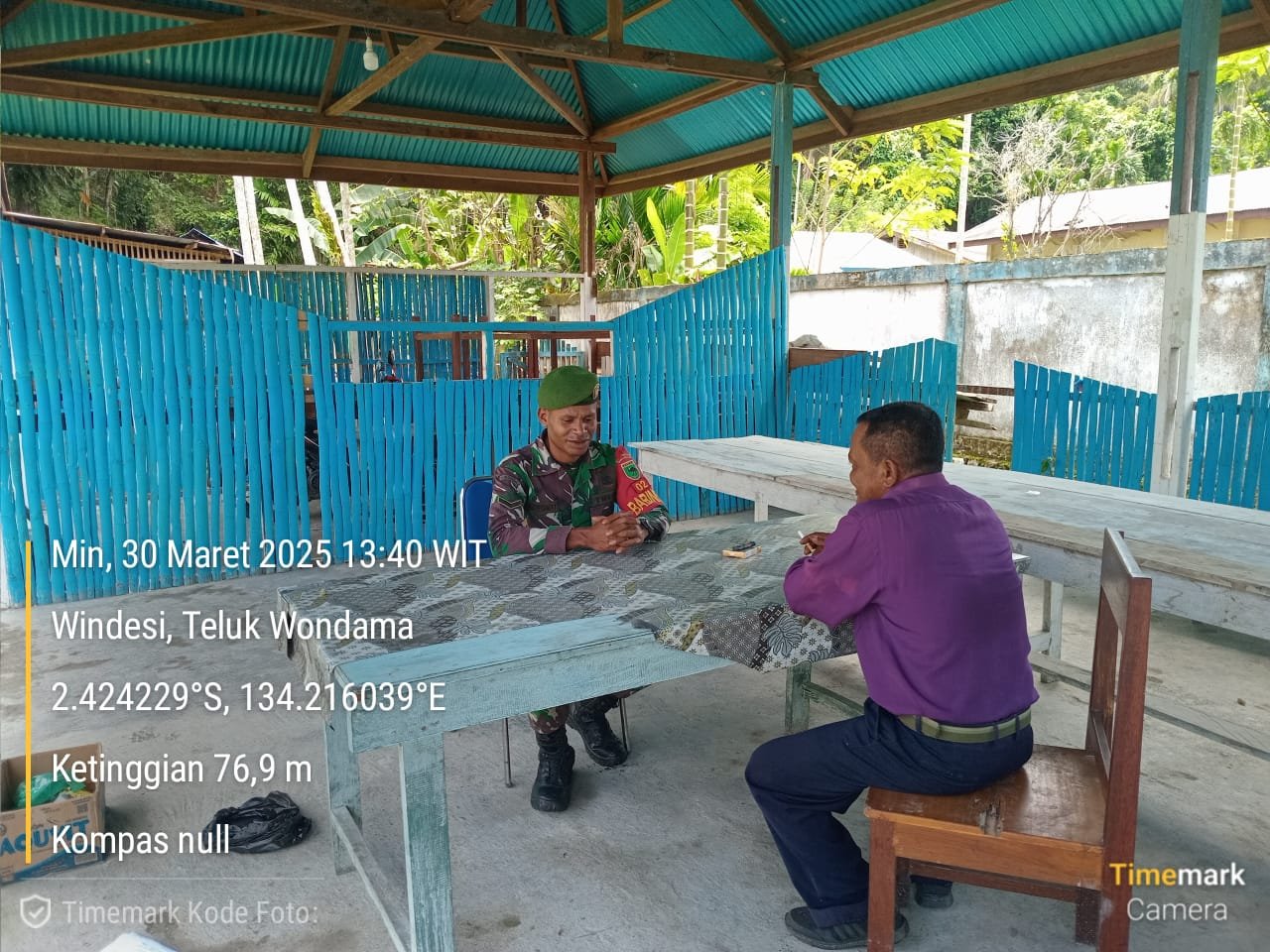 TELUK WONDAMA – Babinsa Koramil 1811-02/Windesi, Kodim 1811/Teluk Wondama, melaksanakan kegiatan Komunikasi Sosial (Komsos) dengan Tokoh Agama di wilayah binaannya. Kegiatan ini bertujuan untuk menjaga kerukunan beragama dan mempererat hubungan antara TNI dengan masyarakat, khususnya jemaat Gereja Kristen Indonesia (GKI) Van Balen yang berada di Kampung Wamesa Tengah, Distrik Windesi, Minggu (30/03/2025).