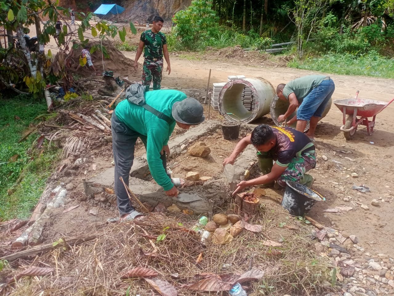 Lima Puluh Kota — Proses kegiatan TMMD ke 124 Tahun 2025 Kodim 0306/50 Kota hingga saat ini masih berlangsung, anggota Satgas TMMD yang diterjunkan di Nagari Harau Kecamatan Harau Kabupaten 50 Kota terus mengebut pengerjaan Monumen/Tugu Prasasti TMMD, Minggu (11/5/2025).
