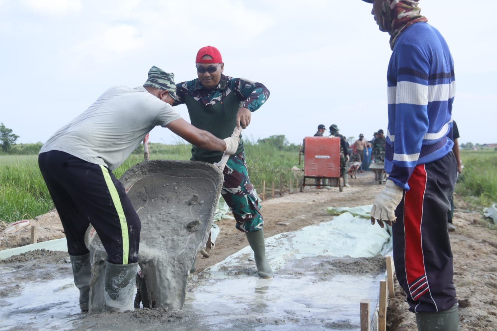 Mempawah, 10 Mei 2025 – Terik matahari tak menyurutkan langkah dan semangat di Desa Sungai Purun Kecil, Kecamatan Sungai Pinyuh. Di tengah dentingan alat dan tumpahan adukan semen, tampak sosok yang biasanya berada di balik meja komando kini ikut mendorong arco—gerobak berisi adukan semen yang berat—bersama para prajurit dan warga. Dialah Letkol Inf Benu Supriyantoko, S.H., Dansatgas TMMD Reguler ke-124 Kodim 1201/Mempawah.