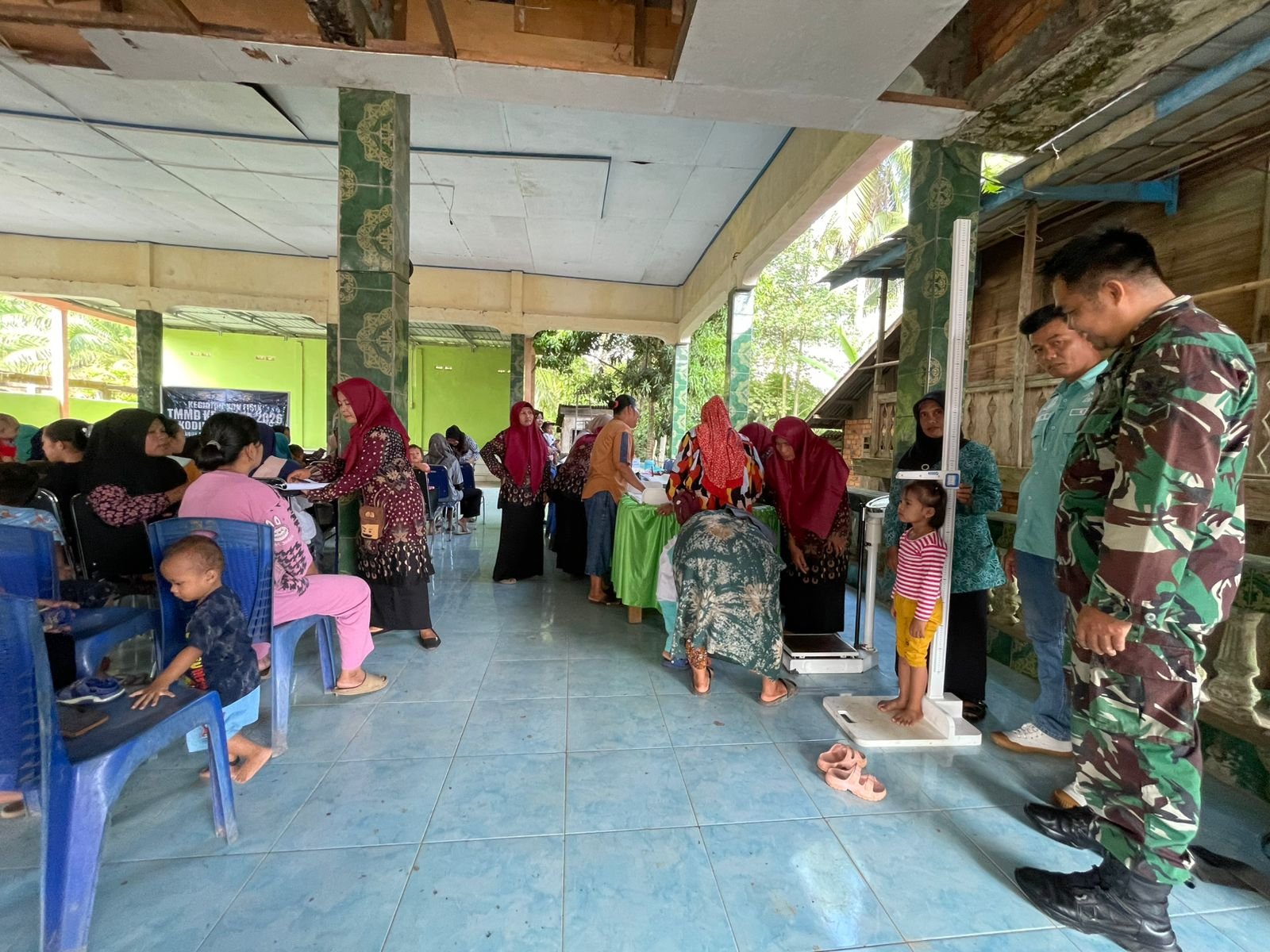 Lahat – Kegiatan pengukuran tinggi badan balita berlangsung di Balai Desa Lubuk Tampang, Kecamatan Kikim Timur, Kabupaten Lahat, pada Kamis (30/4/2026). Satuan Tugas (Satgas) TNI Manunggal Membangun Desa (TMMD) ke-128 berkolaborasi dengan tenaga kesehatan dan perangkat desa dalam kegiatan ini.