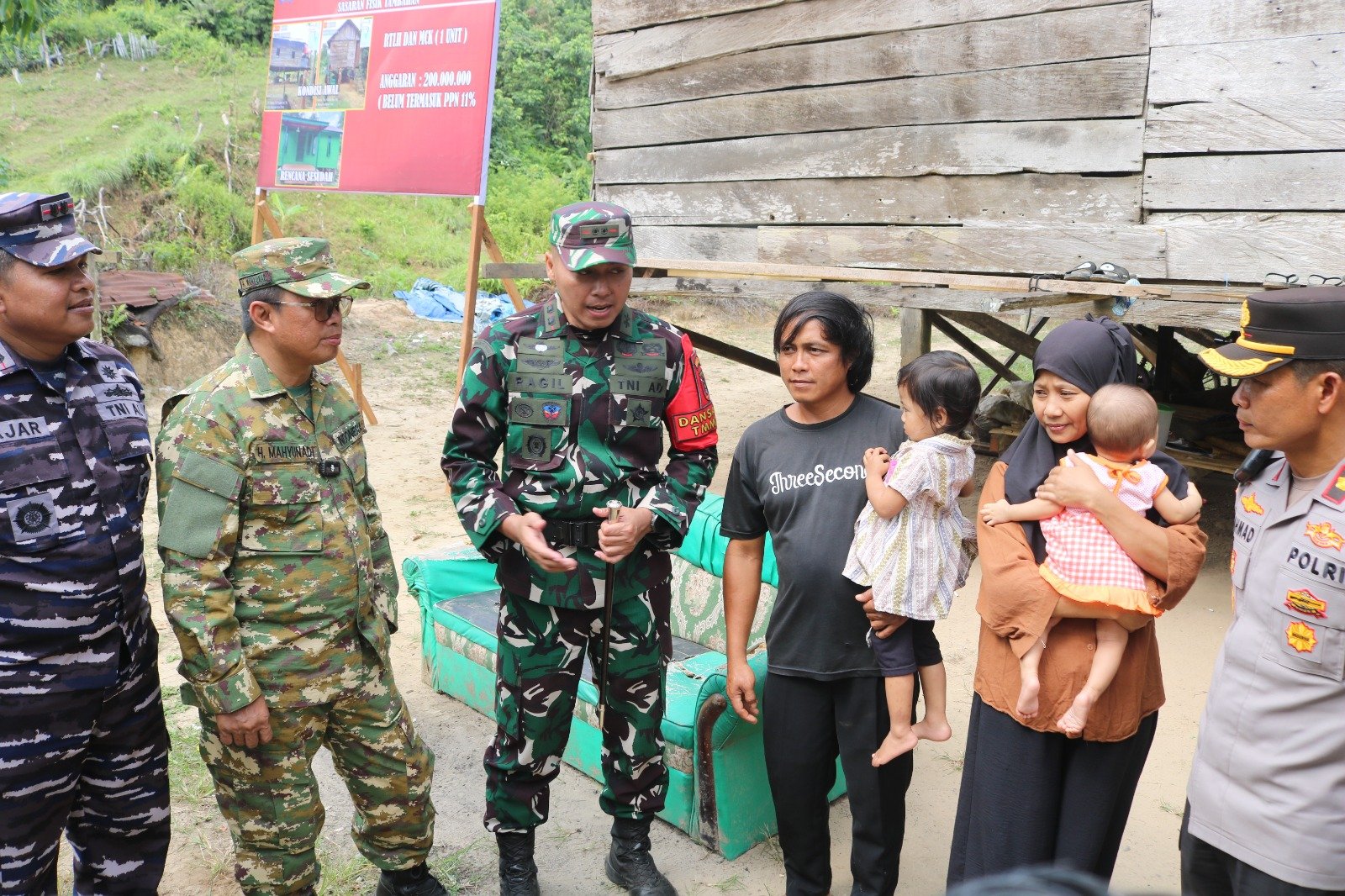 Usai seremoni pembukaan yang sarat makna, Wakil Bupati Mahyunadi, didampingi oleh pilar kekuatan teritorial, Dandim 0909/Kutai Timur Letkol Arh Ragil Setyo Yulianto, tak membuang waktu. Langkah tegap mereka langsung mengarah ke jantung permasalahan, meninjau salah satu denyut nadi program: perehaban Rumah Tidak Layak Huni (RTLH) yang berdiri di RT. 08, Desa Suka Rahmat, Kecamatan Teluk Pandan. Rumah milik Bapak Rahman, seorang kuli bangunan dengan perekonomian yang bersahaja, menjadi saksi bisu sentuhan pertama TMMD. Tinjauan ini bukan sekadar formalitas, melainkan pengecekan awal yang cermat, memastikan setiap fondasi harapan dibangun sesuai cetak biru rencana yang telah digariskan.