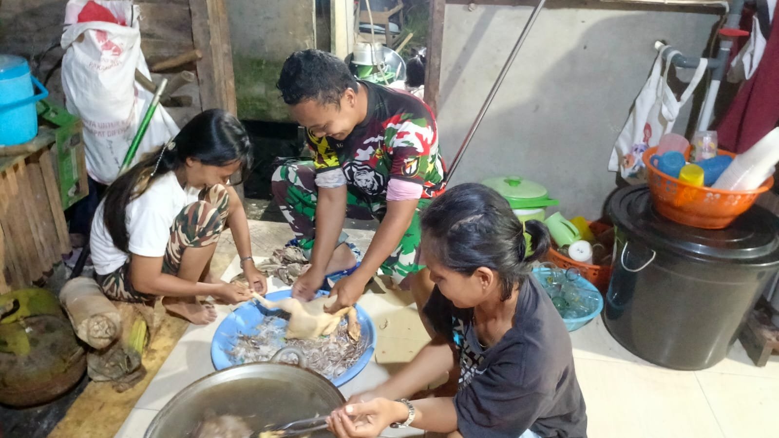 Ayam tersebut dibelikan oleh warga sebagai bentuk rasa syukur dan terima kasih atas kerja keras Satgas TMMD yang telah membantu pembangunan di desa mereka. Momen itu tak hanya jadi persiapan untuk makan malam, tetapi juga menjadi ruang interaksi penuh kekeluargaan.