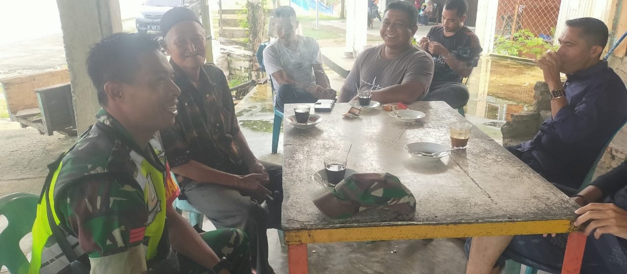Babinsa Koramil 02/Samoiniet melakukan Komsos di warung Kopi di Desa Lhok Kruet, Kecamatan Samoiniet, Kamis (03/04).