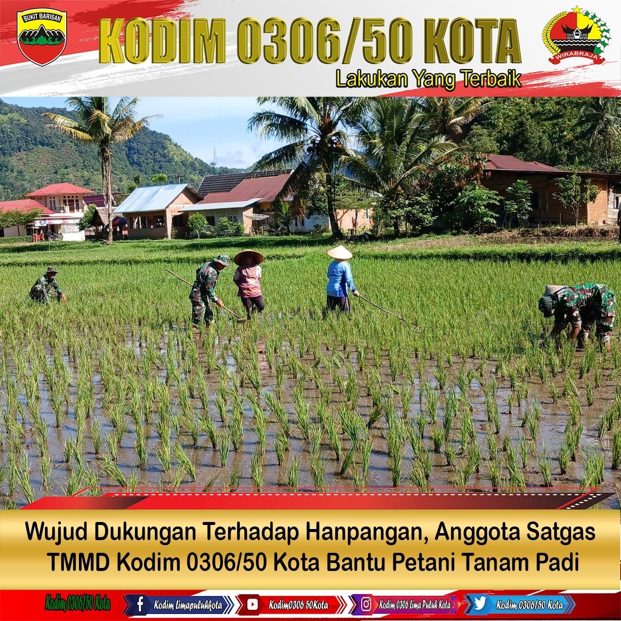 Wujud Dukungan Terhadap Hanpangan, Anggota Satgas TMMD Kodim 0306/50 Kota Bantu Petani Tanam Padi