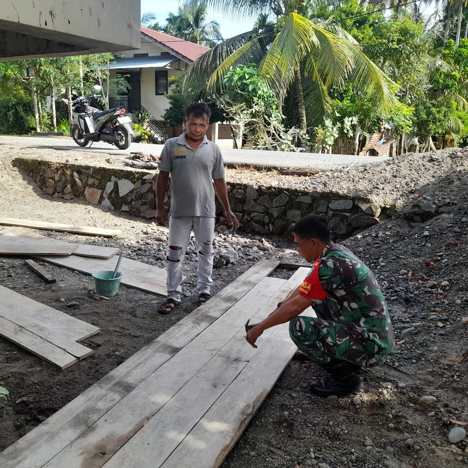 Sementara itu, pemilik rumah, Bapak Mahdi menyampaikan terima kasih kepada Babinsa yang telah peduli dalam membantu proses pembuatan mal cor tiang rumah.