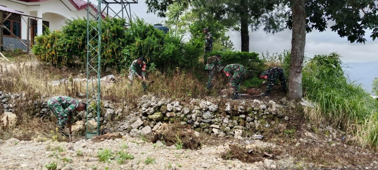Mollo Utara _ Anggota Koramil 03/Mollo Utara melaksanakan kegiatan pembersihan pangkalan sebagai bagian dari upaya menjaga kebersihan lingkungan dan menciptakan suasana yang nyaman di lingkungan sekitar Makoramil 03/Mollo Utara Kab.TTS. Kamis (13-03-2025)