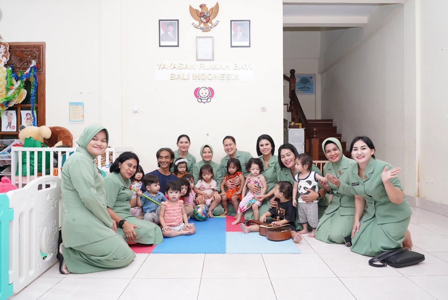 Gianyar – Sukawati, Peringati HUT ke-79 Persit Kartika Chandra Kirana (KCK), Ketua Persit KCK PD IX/Udayana, Ny. Dessy Zamroni, didampingi oleh Wakil Ketua Persit KCK PD IX/Udayana, Ny. Zusana Hartono, beserta rombongan, kunjungi Bali Baby Home (Yayasan Rumah Bayi Indonesia) di wilayah Banjar Tubuh, Desa Batubulan, Kecamatan Sukawati, Kabupaten Gianyar. Selasa (11/2/2025)