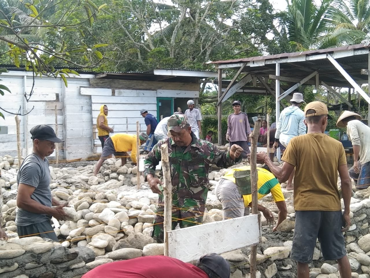 Dalam kegiatan tersebut, masyarakat terlihat antusias dan bekerja sama, mulai dari mengangkut bahan bangunan hingga menyusun pondasi rumah. Bapak Sabri selaku pemilik rumah mengucapkan terima kasih atas bantuan yang diberikan oleh Babinsa dan masyarakat.