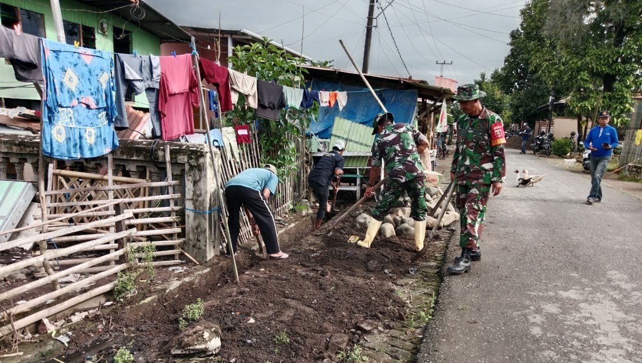 Wujud Lingkungan Bersih, Koramil 1426-03/Galut, Ajak Warga Kerja Bakti Bersihkan Selokan