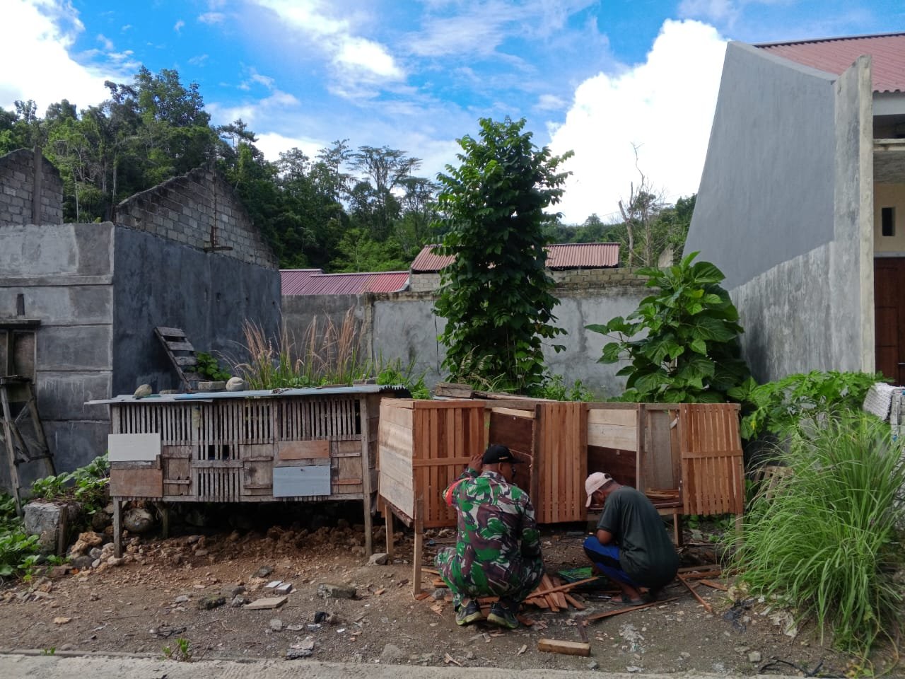 Menurut Babinsa, dihadapkan pada musim penghujan ada baiknya bila kandang dibuat agak lebih tinggi dari tanah untuk mengurangi kelembaban. Tujuan kandang dibuat lebih tinggi agar unggas berupa ayam dan bebek tidak mudah terserang penyakit.
