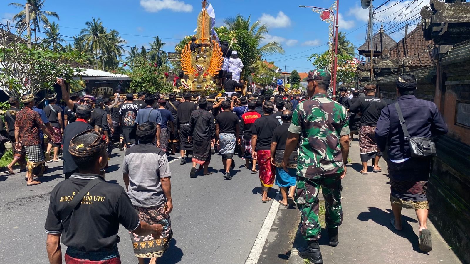 Ia juga menambahkan bahwa selain menjalankan tugas pengamanan, personel TNI turut aktif membantu teknis di lapangan, seperti mengatur jalannya prosesi dan memberikan imbauan kepada warga agar tertib dan disiplin selama kegiatan berlangsung. “Kami tidak hanya menjaga keamanan, tapi juga ikut memastikan jalannya upacara berjalan dengan lancar tanpa gangguan. Ini bentuk kepedulian kami terhadap tradisi dan budaya masyarakat yang harus kita jaga bersama,”