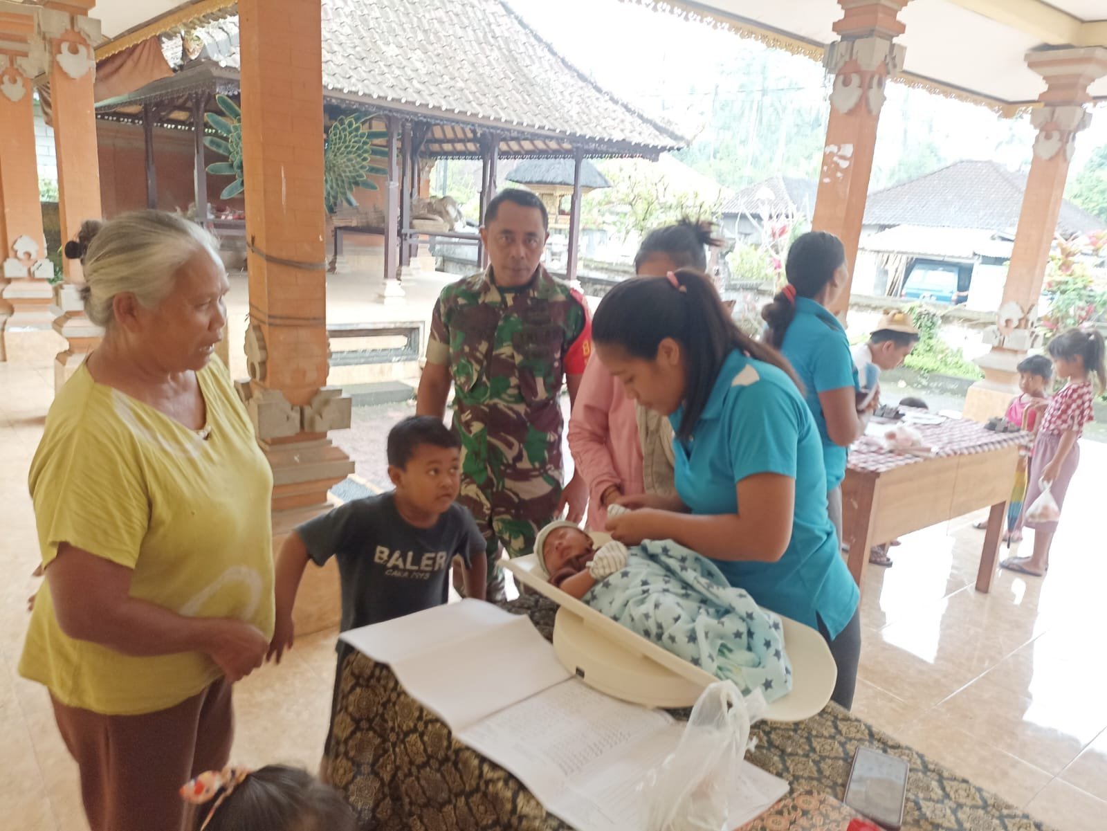 Bangli – Dalam rangka mendukung serta mewujudkan balita yang sehat dan unggul di wilayah binaan Babinsa Desa Bangbang Koramil 03/Tembuku Kodim 1626/Bangli Pelda Kadek Widiarta melaksanakan pendampingan dan