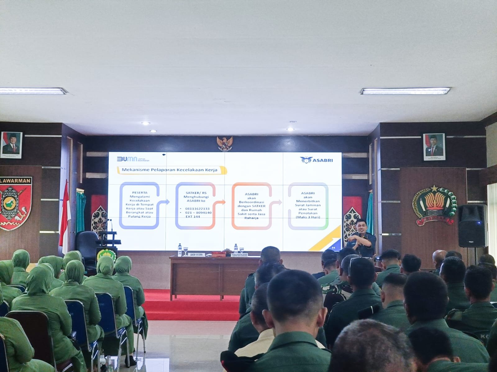 TAPIN – Tingkatkan pemahaman dan pemanfaatan program asuransi sosial bagi prajurit dan keluarganya, Komando Distrik Militer (Kodim) 1010/Tapin bekerja sama dengan PT Asabri (Persero) Cabang Banjarmasin menggelar sosialisasi mendalam mengenai Program Asabri. Kegiatan yang diselenggarakan di markas Kodim 1010/Tapin ini secara khusus membahas program Asabri berdasarkan peraturan terbaru, Peraturan Pemerintah (PP) Nomor 54 Tahun 2020, yang merupakan perubahan dari PP Nomor 102 Tahun 2015, serta dihadiri oleh seluruh Keluarga Besar Kodim 1010/Tapin.
