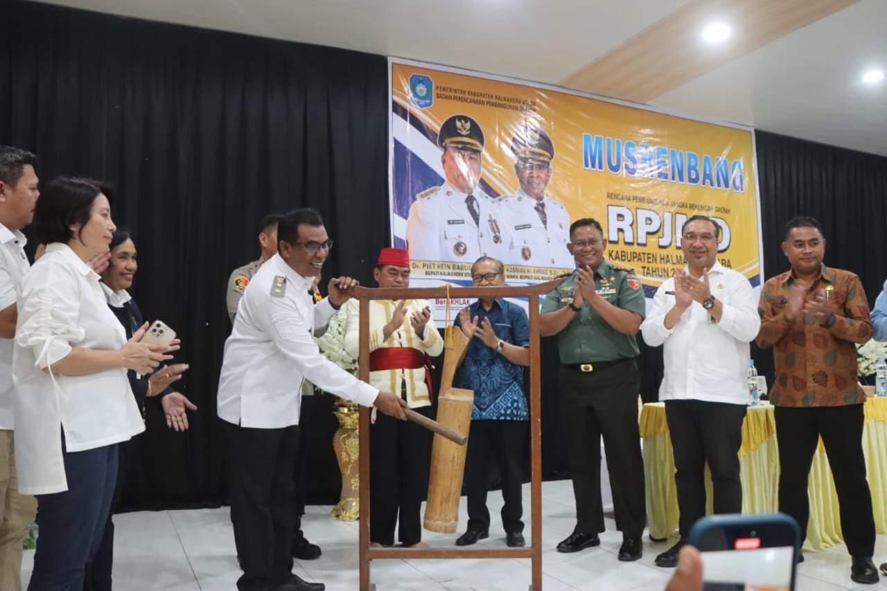 Musrenbang ini menjadi forum strategis dalam merumuskan arah pembangunan lima tahun ke depan dan dihadiri langsung oleh Wakil Bupati Halmahera Utara, Dr. Kasman Hi Ahmad, M.Pd., beserta istri. Turut hadir dalam kegiatan tersebut Kepala Bidang Pengendalian, Evaluasi dan Pelaporan Zumarlan R. Keliobas, S.STP., M.Si., Ketua DPRD Halut Cristina Lesnussa, Kapolres Halut AKBP Erlichson Pasaribu, S.H., S.I.K., Ketua Dewan Penasehat Aman Nusantara Ir. Hein Namotemo, M.Sp., Sekda Halut Drs. E.J. Papilaya, M.T.P., para Asisten Bupati, para anggota DPRD, para pimpinan OPD Kabupaten Halut, para camat se-Kabupaten Halut, serta perwakilan dari Pertamina Kupa-kupa Peltu Udin, para pengurus Musrenbang, dan tamu undangan lainnya.